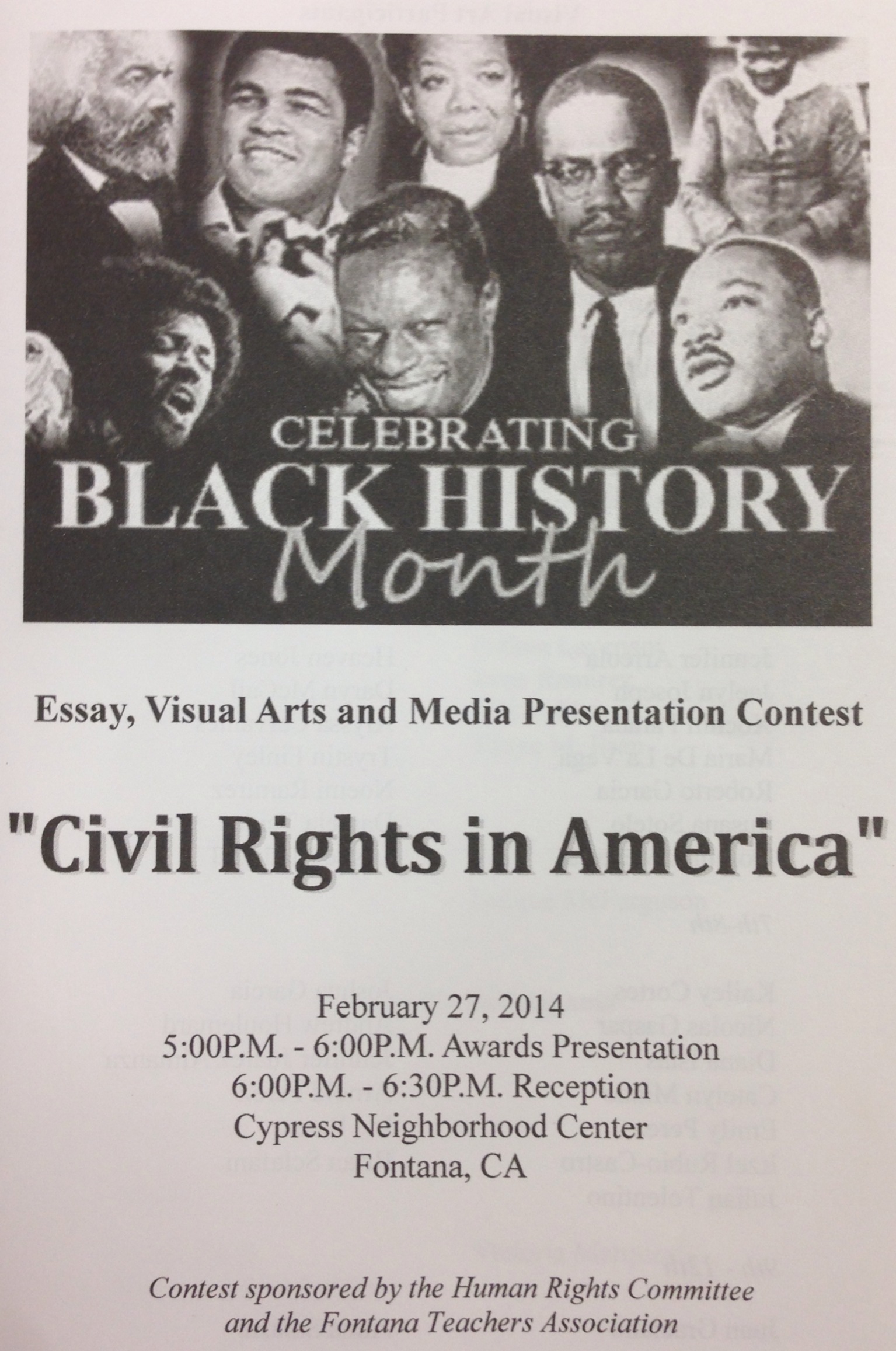 Several Dorothy Grant 3rd graders were recently honored for their essays and art created in honor of the Fontana Teachers Association’s Black History Month Essay, Visual Arts, and Media Presentation Contest entitled “Civil Rights in America.”