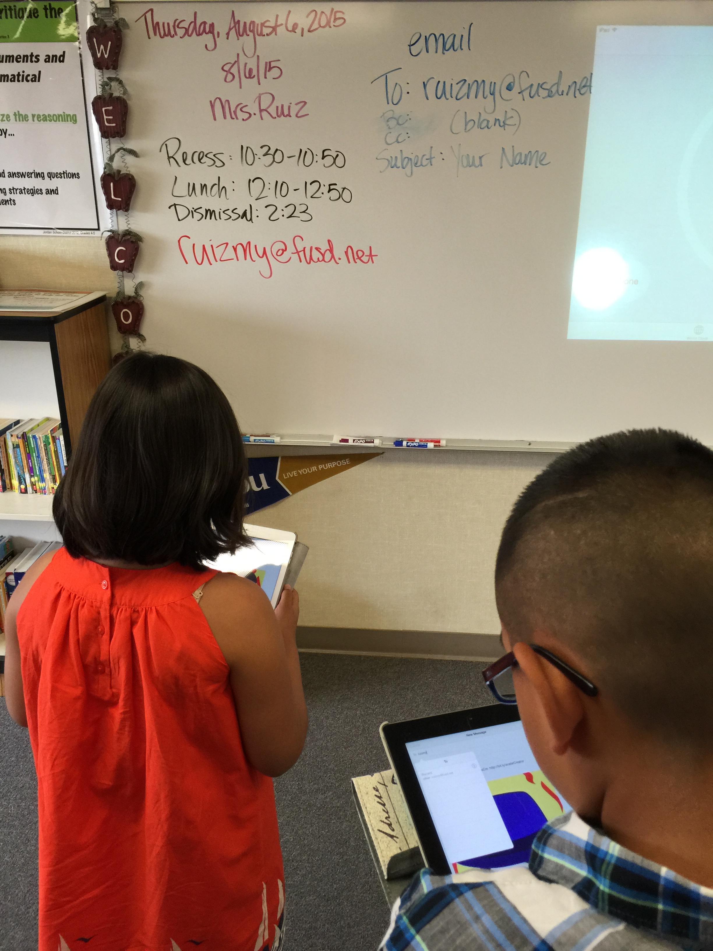 Today marked the beginning of a new school year. I was very excited for the grade change from 3rd to 4th, but with that change came a room change. I have moved from F1 to P4, which is a newly installed portable. The move was not without its stresses, but in the end the room was ready to go come the 1st day of school to welcome in its first DGE 4th graders.